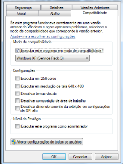 - Click na guia Compatibilidade, em seguida em Modo de compatibilidade, selecione Windows XP (Service Pack 3)